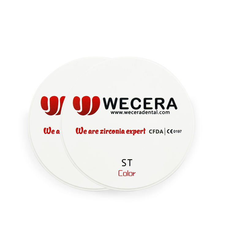 Ο δίσκος Zirconia χρώματος του ST Wecera αποτελείται από τη βιολογική νανο σκόνη 100% zirconia από Tosoh με την κρύα ισοστατική πιέζοντας τεχνολογία παραγωγής, είναι κατάλληλο για την αντιμετώπιση, το πλαίσιο, την υποδομή, τη μεταγενέστερες κορώνα και τη γέφυρα. Είναι έξοχο διαφανές προ-σκιασμένο zirconia.