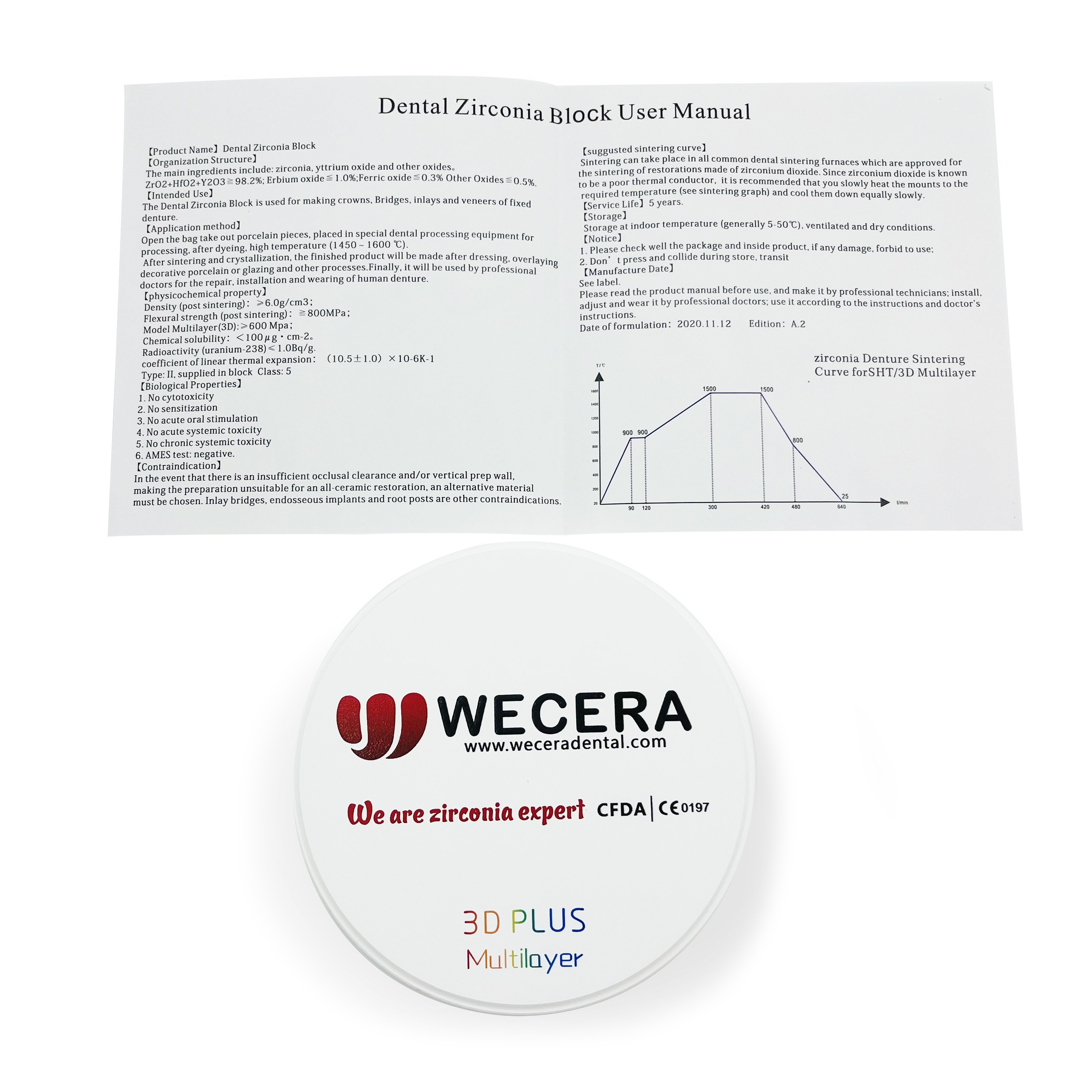 Το 3D Plus Multilayer Zirconia της WECERA είναι ένα προϊόν αιχμής που κατασκευάζεται στην ΚΙΝΑ, σχεδιασμένο για ένα ευρύ φάσμα εφαρμογών λόγω της υψηλής διαφάνειάς του και της εξαιρετικής ποιότητάς του. Αυτό το 3D Multi-Layered Zirconia είναι ένα ευέλικτο υλικό που μπορεί να χρησιμοποιηθεί σε διάφορα σενάρια, καθιστώντας το κορυφαία επιλογή για επαγγελματίες και τεχνικούς οδοντιατρικής.