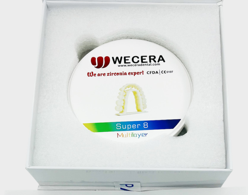 Συνολικά, ο πολυστρωματικός δίσκος ζιρκονίας Wecera Super 8 είναι μια εξαιρετική επιλογή για οδοντιατρικούς ειδικούς που αναζητούν ένα αξιόπιστο, πιστοποιημένο και υψηλής απόδοσης οδοντιατρικό μπλοκ ζιρκονίας που ενσωματώνεται απρόσκοπτα με σύγχρονα συστήματα CAD/CAM για να προσφέρει εξαιρετικά αποτελέσματα στους ασθενείς.